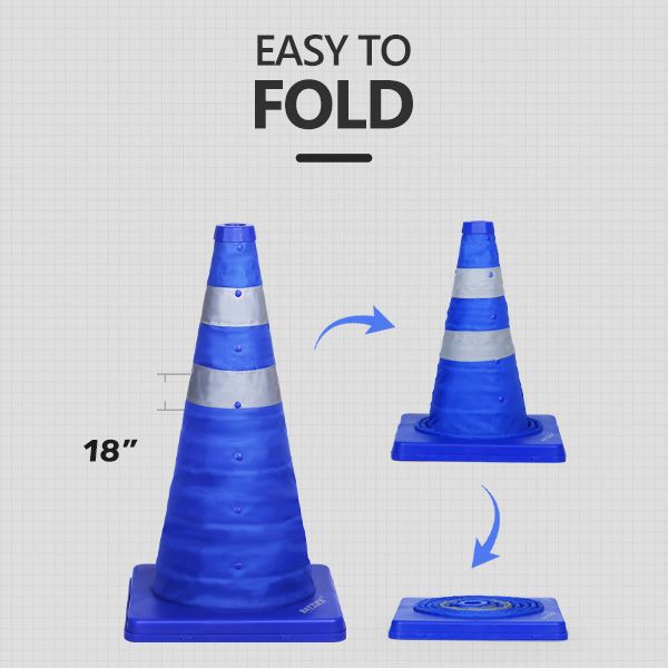 [Collapse design & Easy storage] - Each collapsible traffic cones can collapse up to 18" and collapses down to 0.9" in height for easy storage which only takes a small space in your car or garage. Carry the traffic cones conveniently.