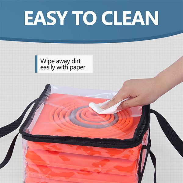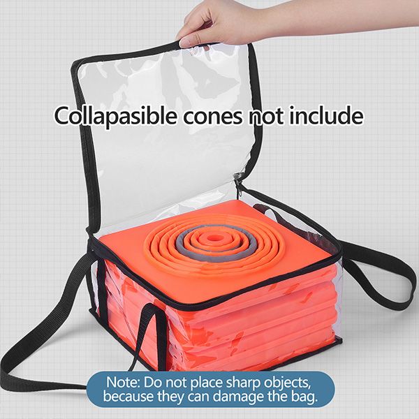 Transparent design: These organizer bag is made of soft transparent plastic PVC, which can keep collapsible orange cones organized and easily accessible. Zipper pouch is smooth and hard to get stuck when using.