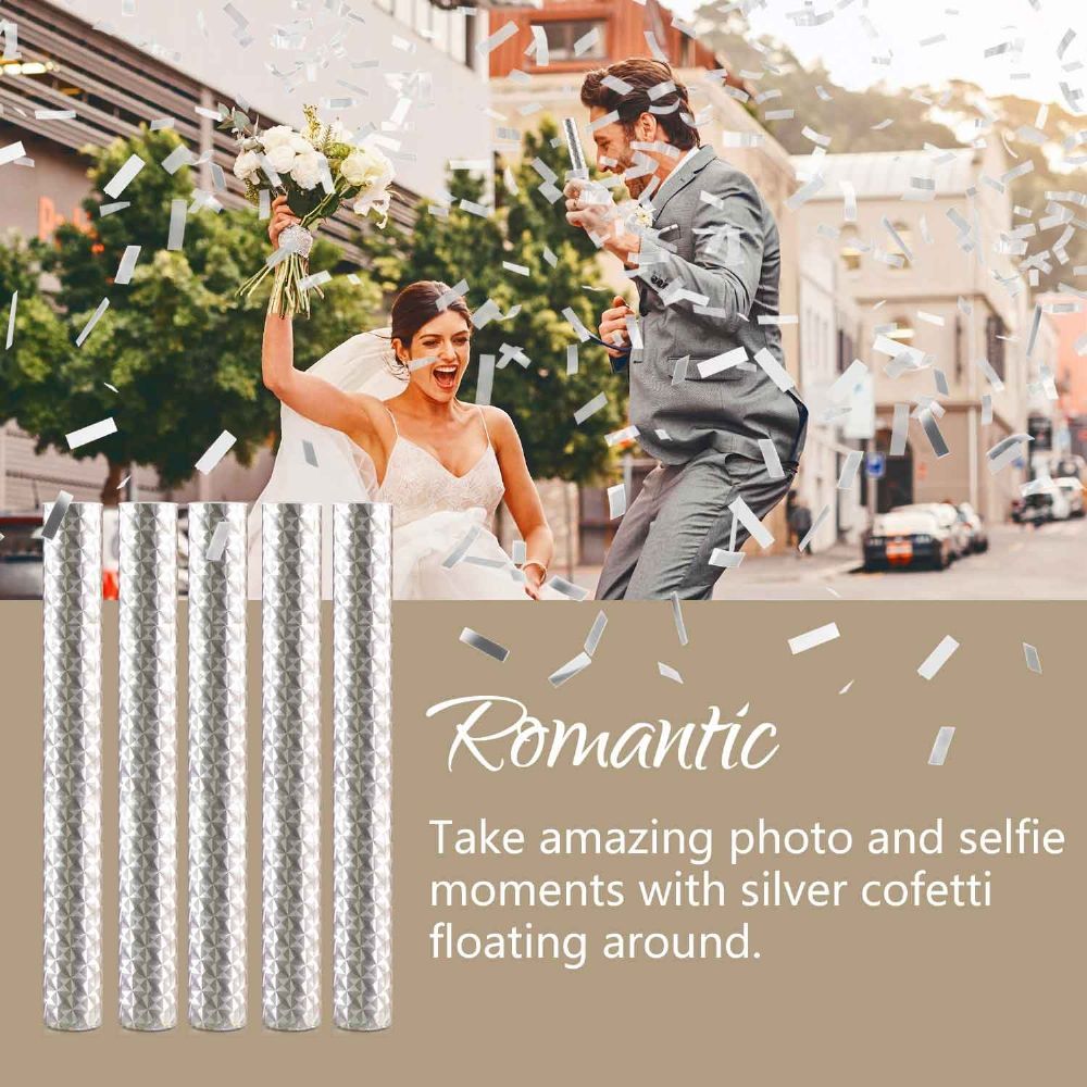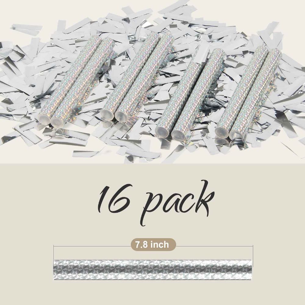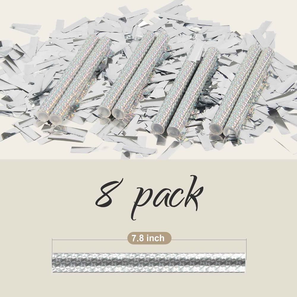 SIZE - Included 8/16 packs of confetti wands, 7.8inch/20cm in length, and each one loaded with 21grams silver mylar confetti. They can be conveniently tucked away in the back or in the sleeves, giving your friends a huge surprise.