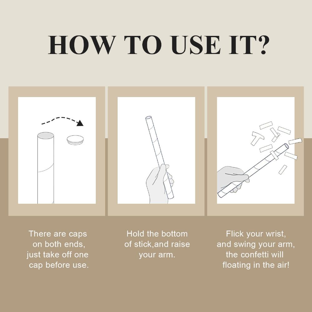 EASY TO USE - Simply open the cap, swing your arm and flick the wands, the regular rectangular shape confetti will flutter in the air. It's great for party decoration, taking gorgeous photos, surprise your friends. Just shaking to the sky, tons of gold foil papers will flutter around you.