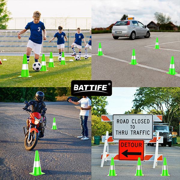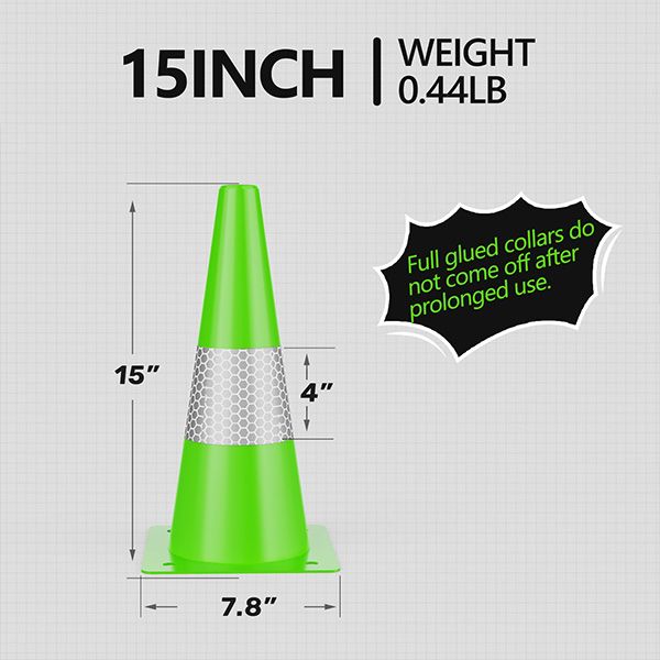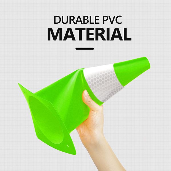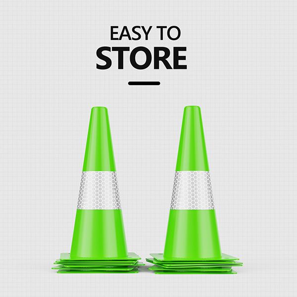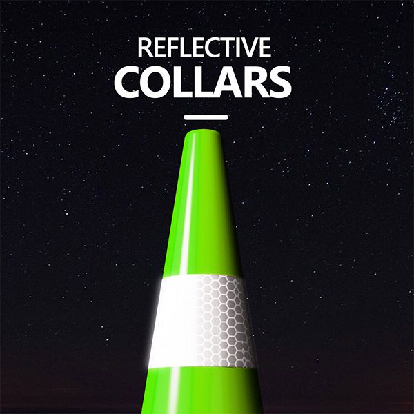 REFLECTIVE COLLARS - With reflective collars and bright lime green color, the cones are highly visible during the day or night. 360 degrees of visibility is a significant alternative but not suitable for fog, rain, snow, or other bad conditions.