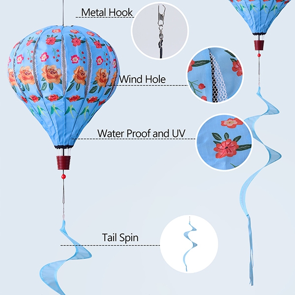 Colorful Hot Air Balloon - The wind spinner has a 360° rotatable design. The rotating wind balloon is a great visual effect hanging from a high place with a robust rope and hook. It is perfect for adding a charm to your yard, garden, or patio.