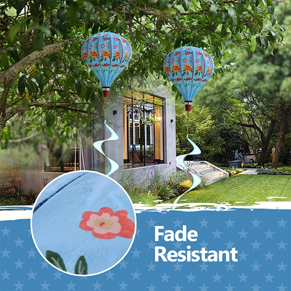 Beautiful & practical - The panels are in the style of some colorful flowers. If you are looking to decorate your outdoor space or add scenery to your yard, this hot air balloon wind spinner is a good choice.