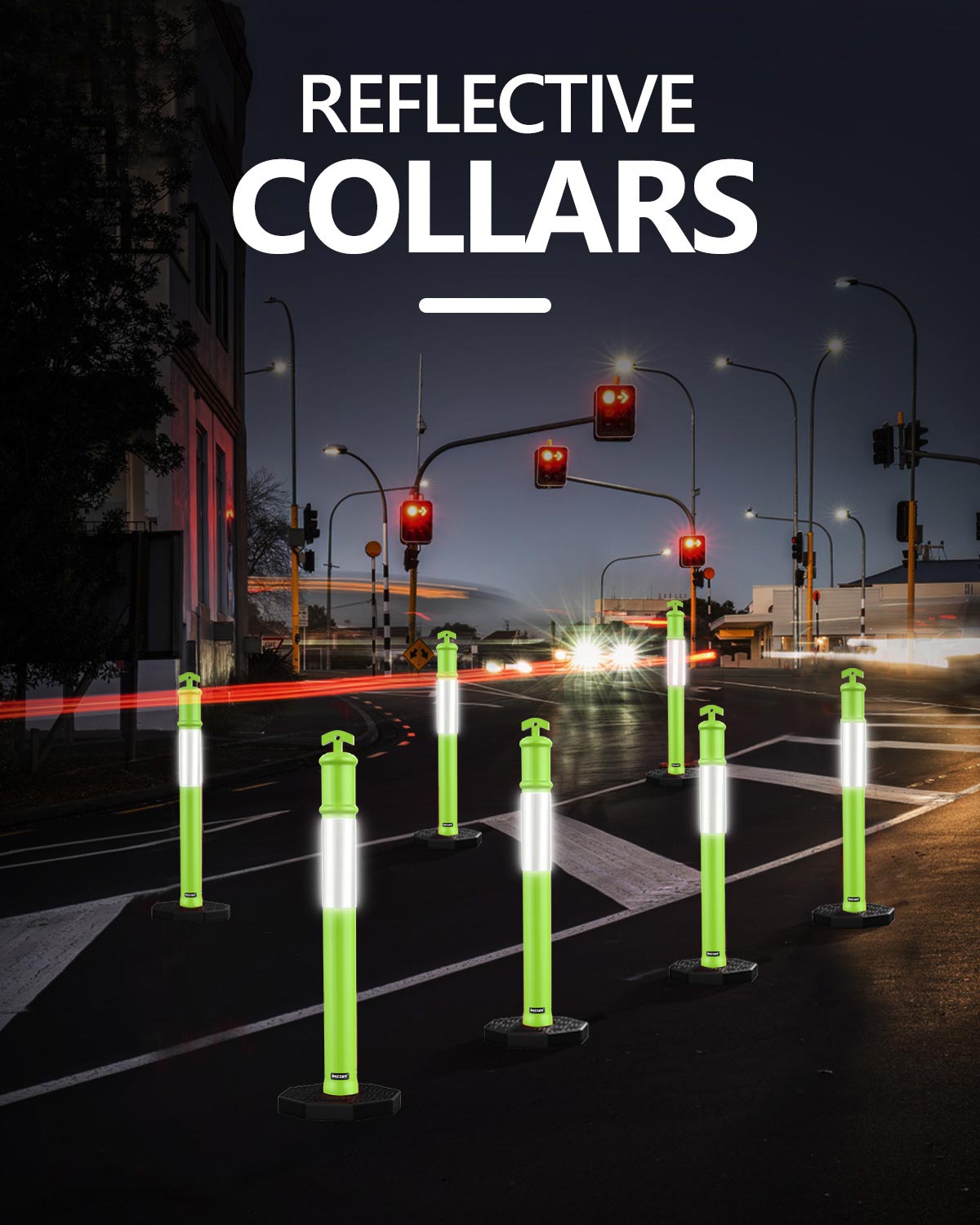 Visible Day and Night: With a 9.8 " hidden reflective strip, the green safety delineator post cones are highly visible during the day or night. Create caution or work areas in your driveway or marks off safe places for driver training