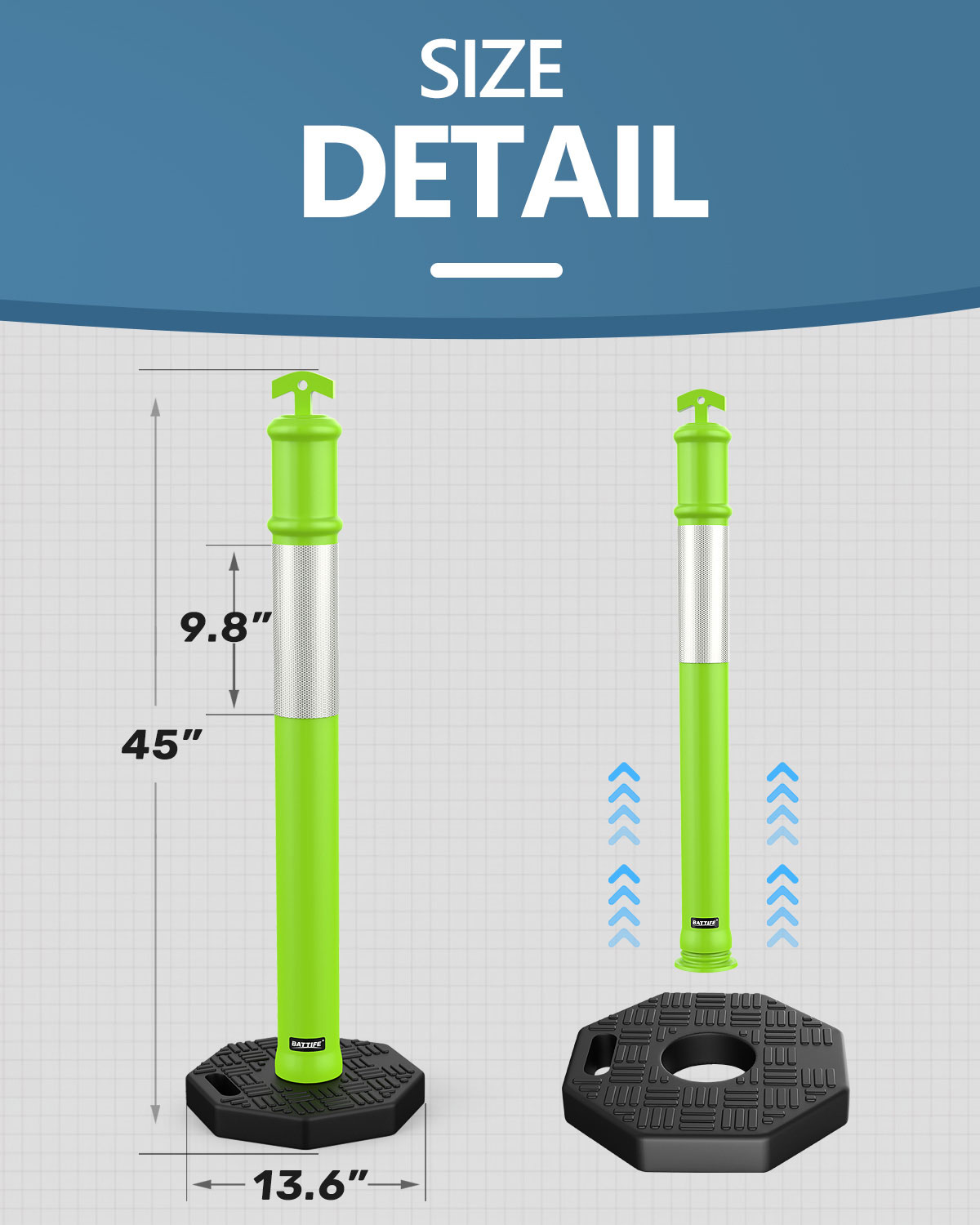 Visible Day and Night: With a 9.8 " hidden reflective strip, the green safety delineator post cones are highly visible during the day or night. Create caution or work areas in your driveway or marks off safe places for driver training