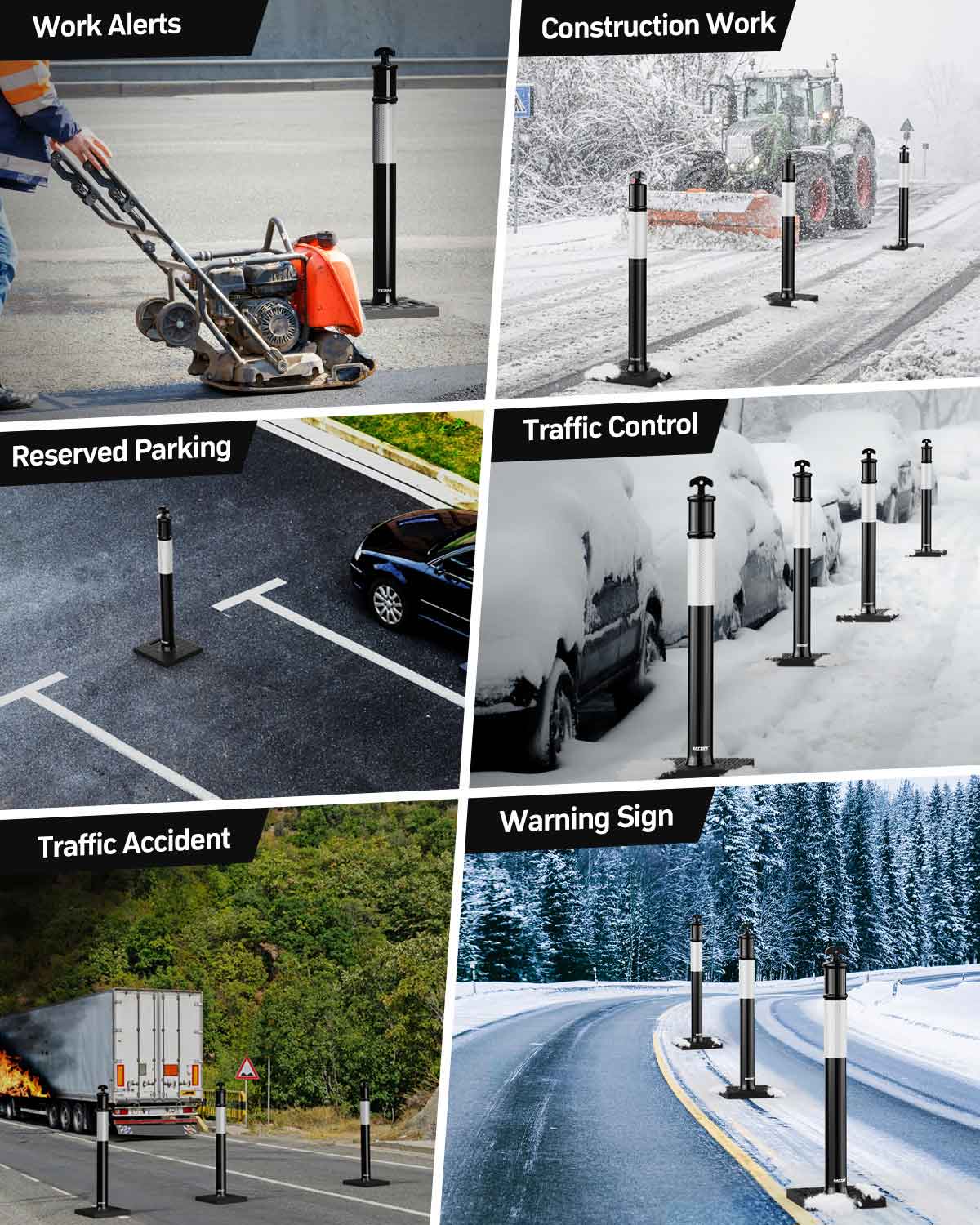 Suitable for many occasions: These 45 inch delineation posts serve a variety of functions, such as being suitable for solving parking problems in apartment complexes. Or to demarcate safe areas in parking lots, driveways, construction sites and other scenarios