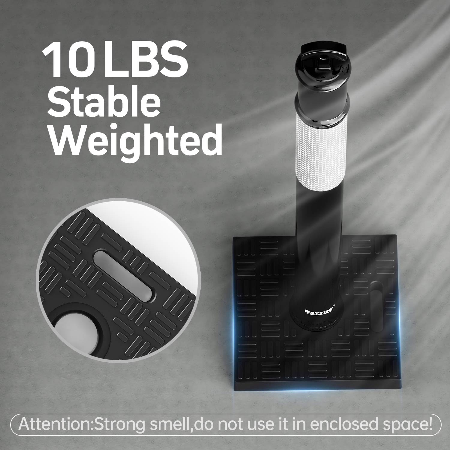 Rugged and Stable: The massive rubber base of the 45 inch tall delineator road cones is 13.6 " X 13.6 " and weighsed 10 lb