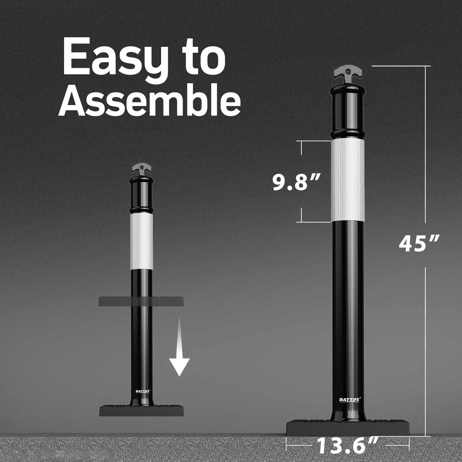 Detachable design : The 45 inch delineator post features a detachable design for easy assembly and space saving