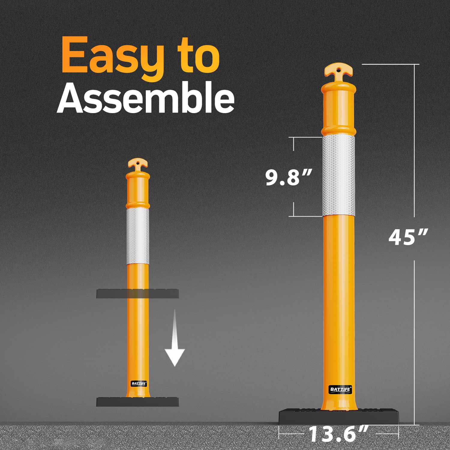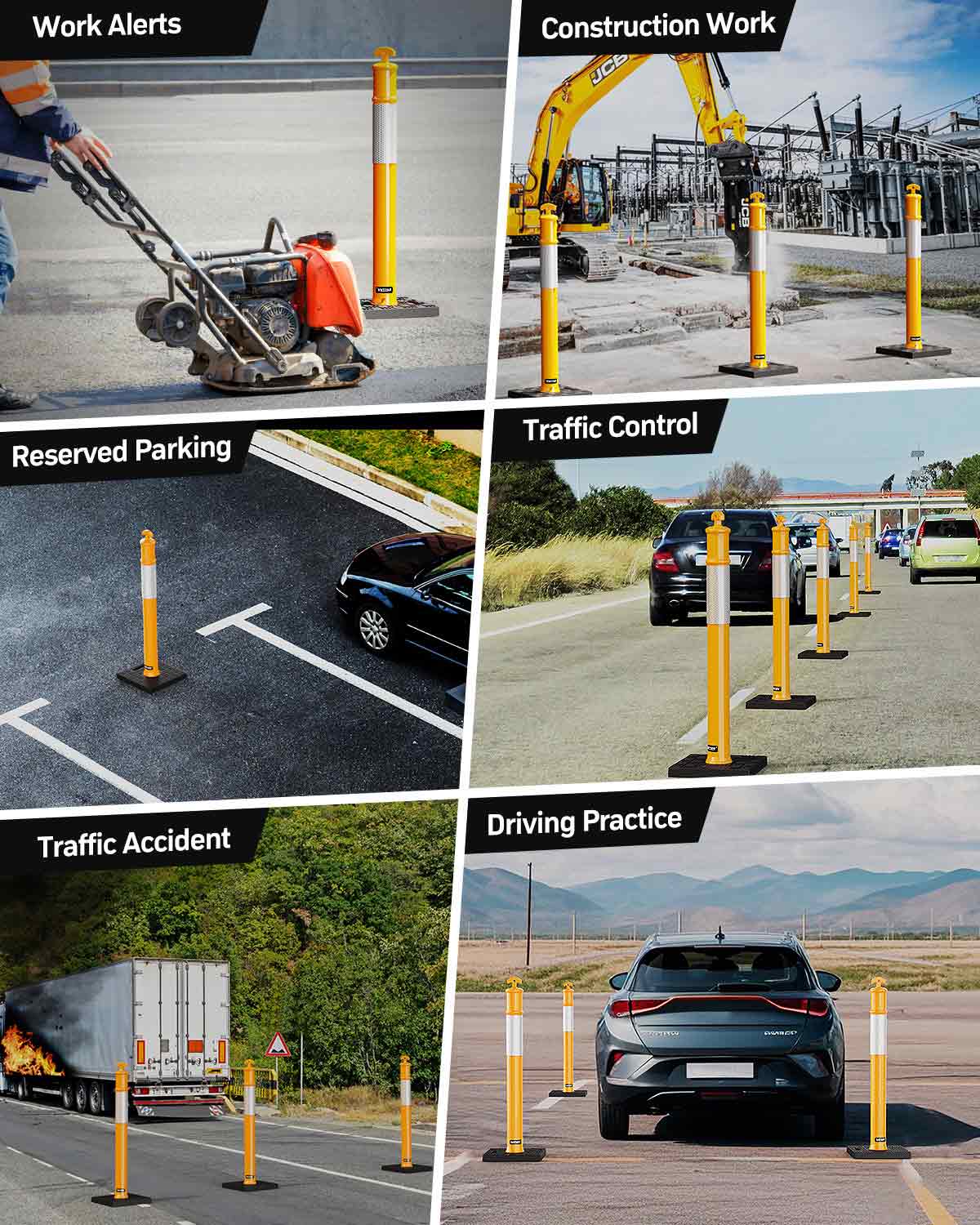 • Suitable for many occasions: These 45 inch delineation posts serve a variety of functions, such as being suitable for solving parking problems in apartment complexes. Or to demarcate safe areas in parking lots, driveways, construction sites and other scenarios