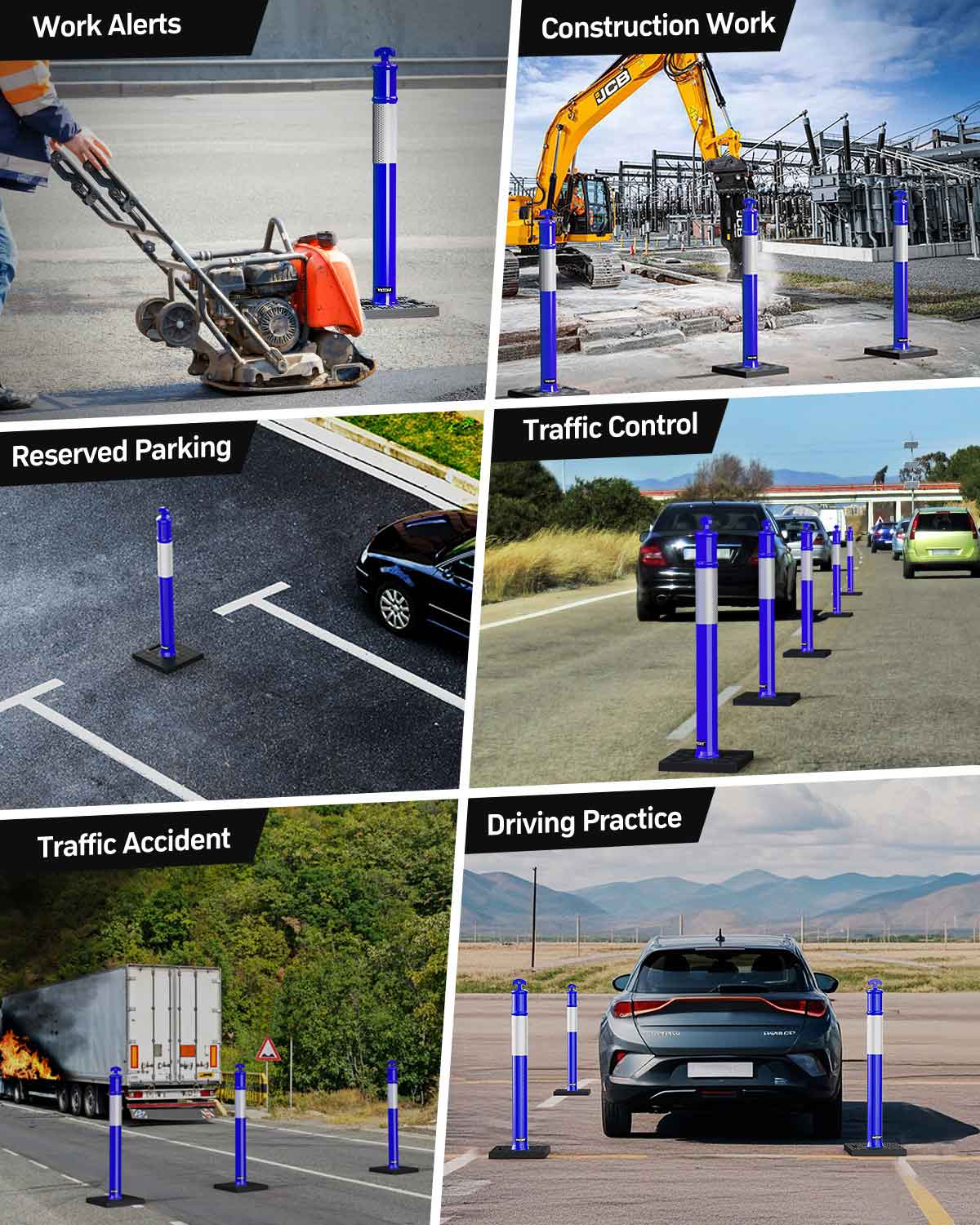 Suitable for many occasions: These 45 inch delineation posts serve a variety of functions, such as being suitable for solving parking problems in apartment complexes. Or to demarcate safe areas in parking lots, driveways, construction sites and other scenarios