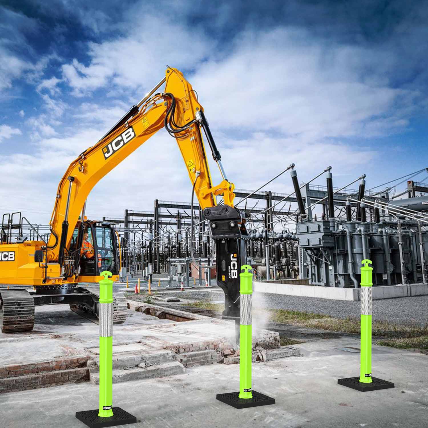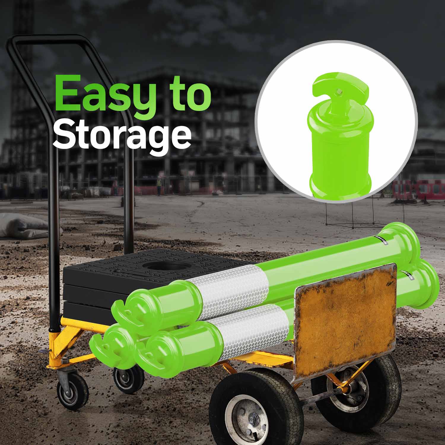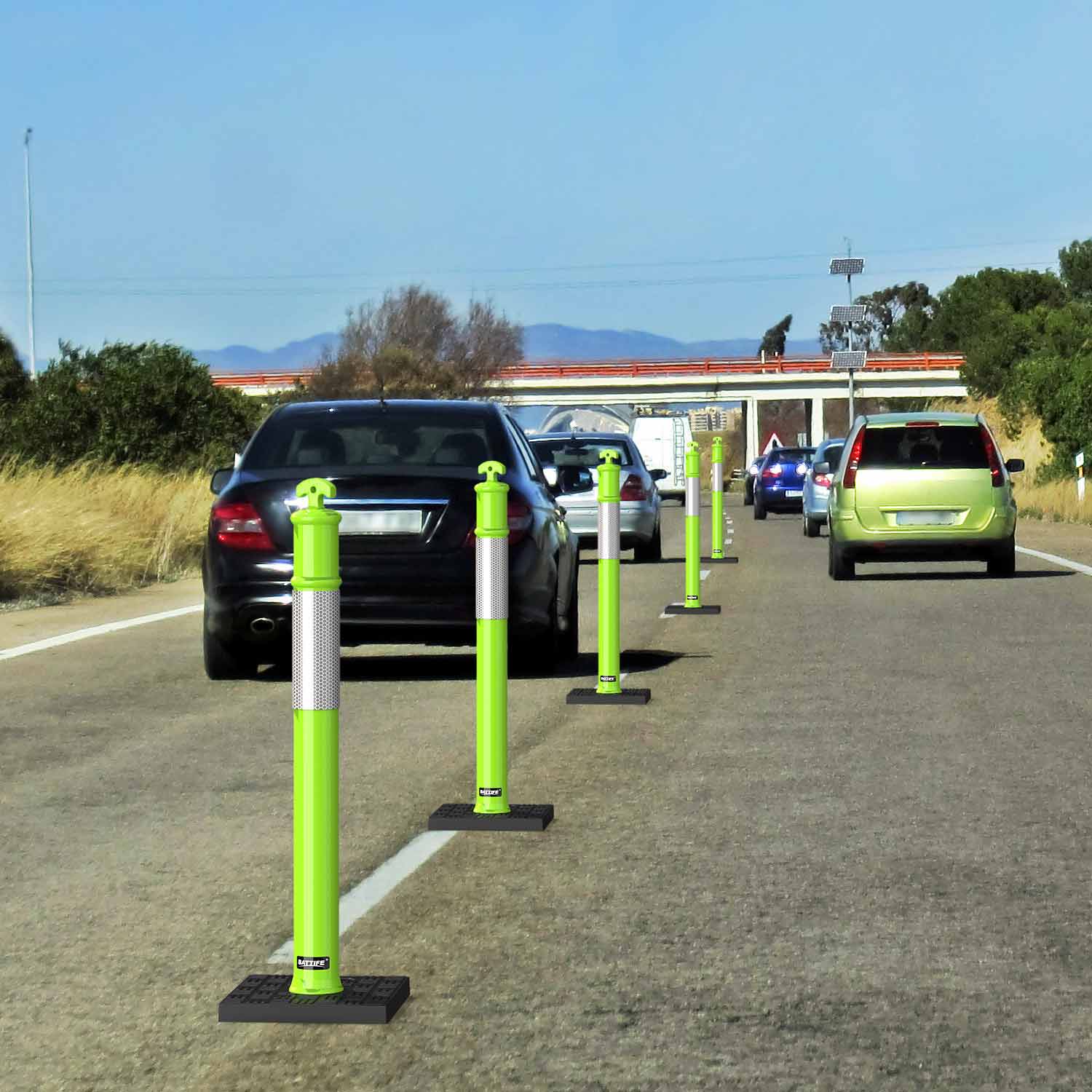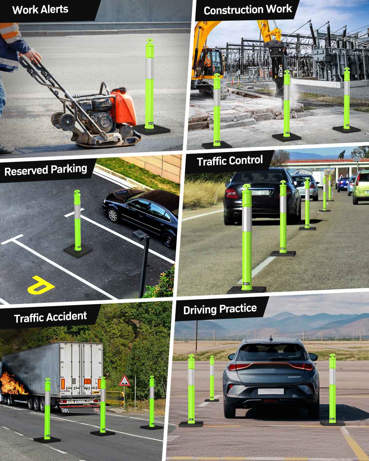 Striking Reflective Collar: Featuring a 9.8" hidden reflective collar, the lime green safety delineator post cones are highly visible both day and night, suitable for cordoning off work zones in public or private areas.