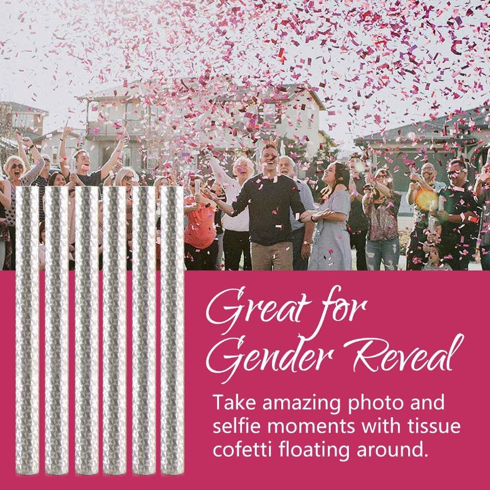 🎉SAFE AND QUITE - Our paper confetti sticks can simply make your baby gender reveal party joyful.Just swing your arm, flick your wrist and create a magical display at your special day.It's much more safer than confetti popper or confetti cannon.