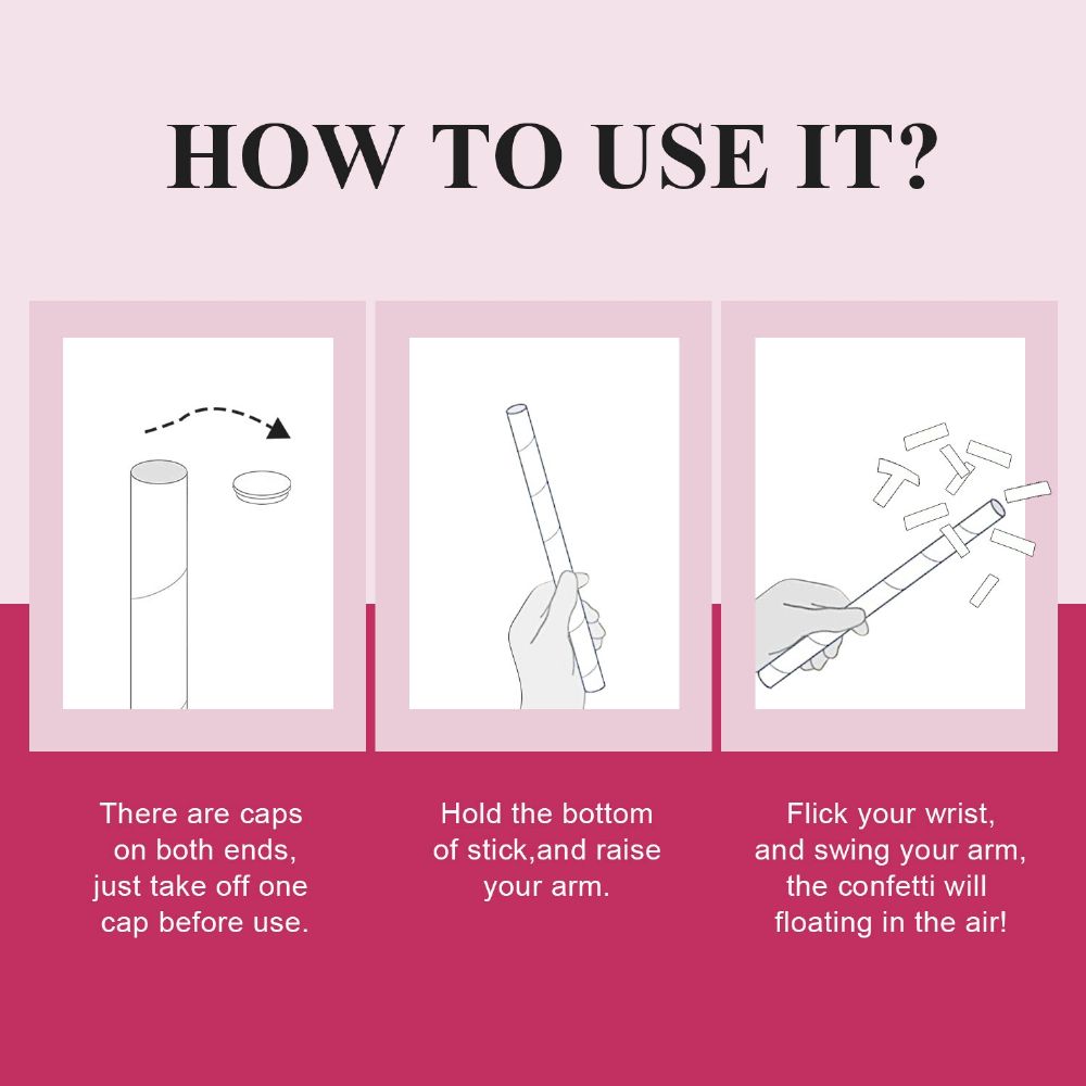 🎉EASY TO USE - Just open the cap and flick the sticks ,the paper confetti flick will flutter in the air, can be used indoor or outdoor party, take gorgeous photos, surprise you friends.