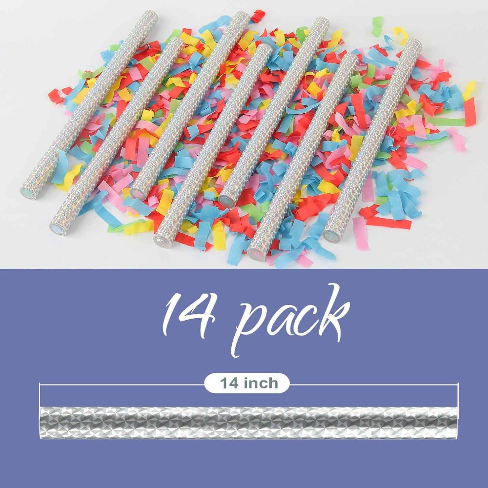 QUANTITY & SIZE - There are 7/14/21packs in total, the length of each confetti tube is 14 inches, and each one loaded with 26grams white confetti.