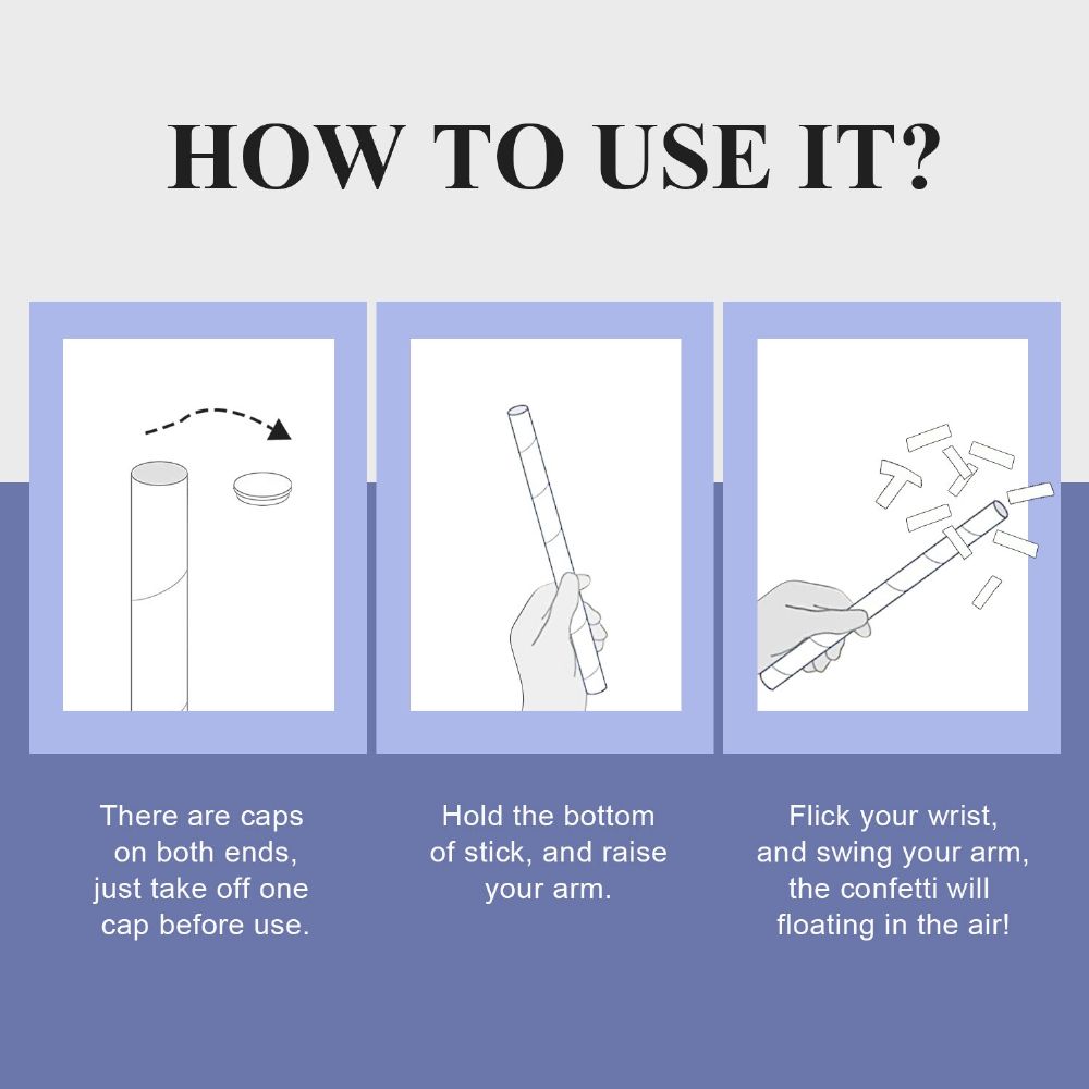 EASY TO USE - Just open the cap, swing your arm and flick the sticks, the paper confetti flick will flutter in the air, can be used at indoor or outdoor parties.