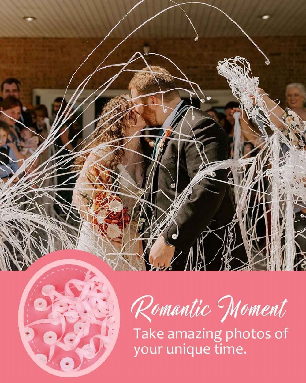 Romantic and Special - Bright, colorful and easy to clean up after all the fun is over, use hand throw streamers poppers to make a grand wedding exit, made guests feel like an important part of the ceremony and provided for a great photo opportunity! Plus, you can easily incorporate your wedding party by put the streamers confetti together as a DIY.