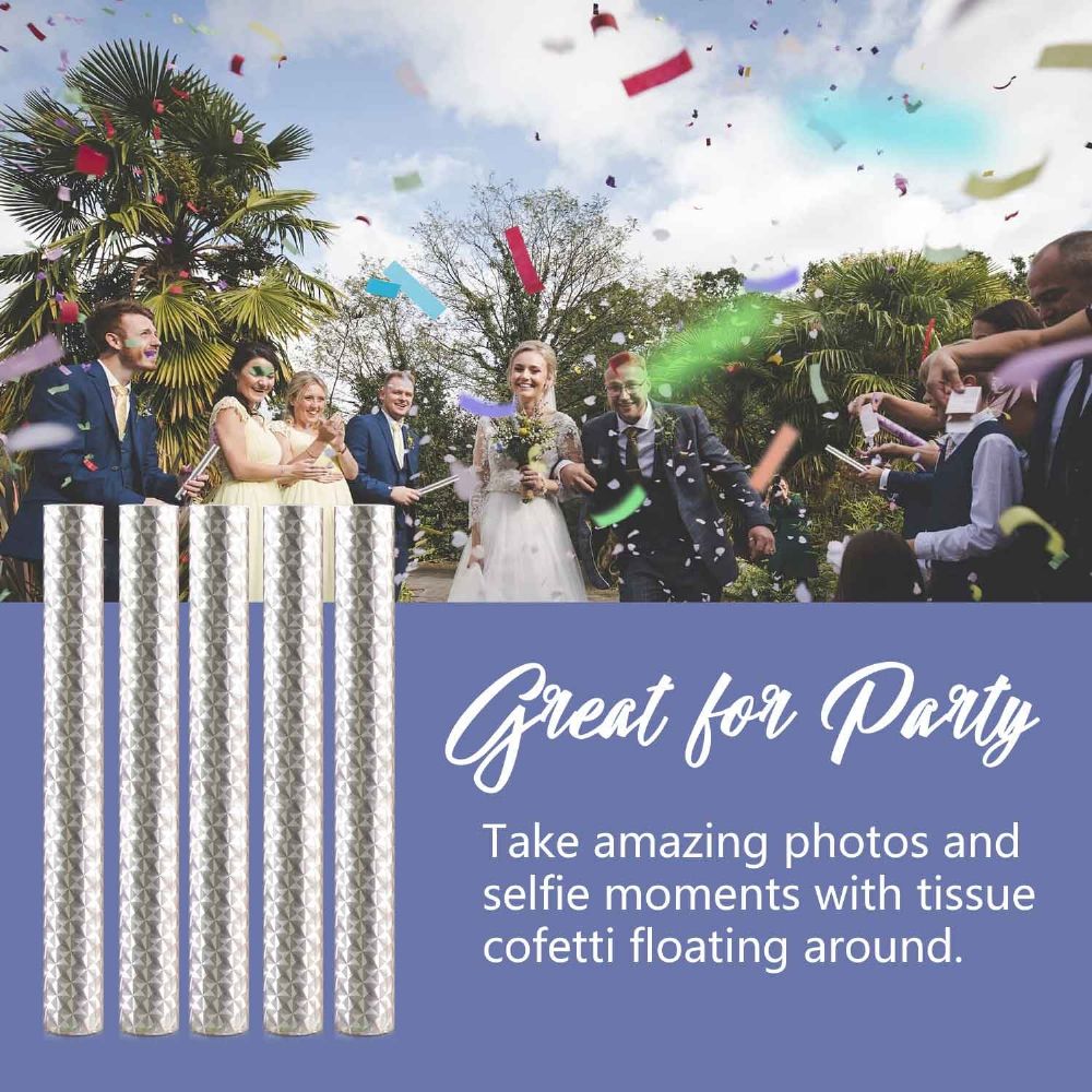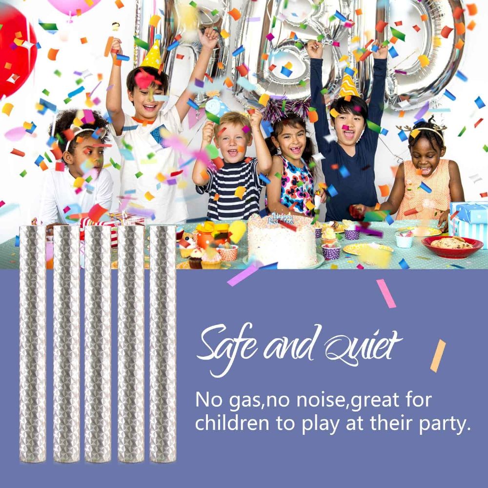 SUPERIOR SAFETY - Our confetti shoots are made of tissue paper which is ECO friendly and suitable for every age! There is no air inside, and no big noise when use, just biodegradable confetti inside the tube, great for kids to enjoy the party.
