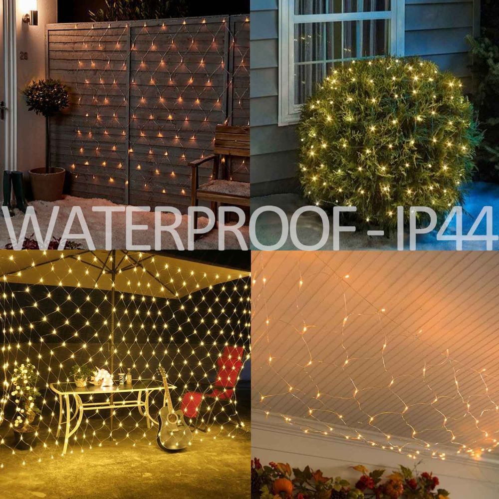 🎉Waterproof - IP44 The fairy net lights and the plug are waterproof designed to withstand light rain and water spills, make it perfect for outdoors decorations, but not suitable for heavy rain or snow.