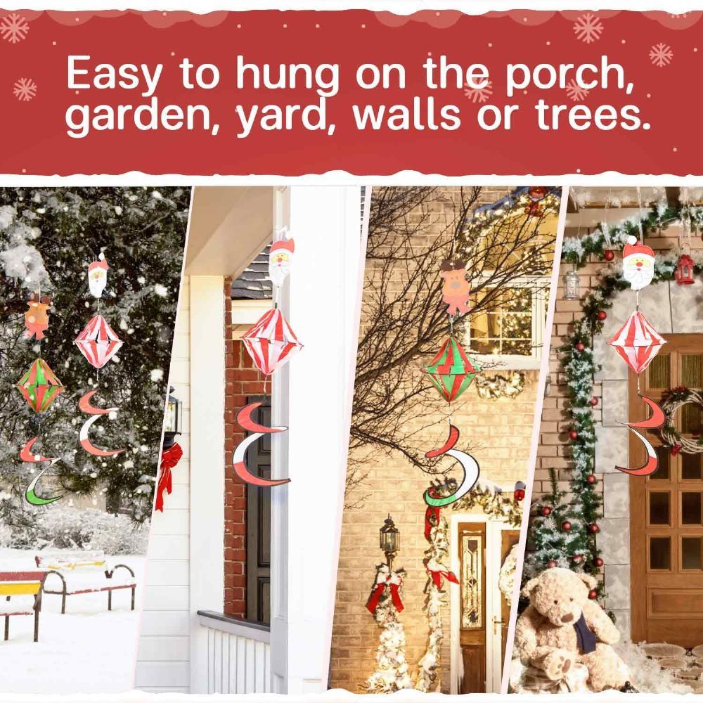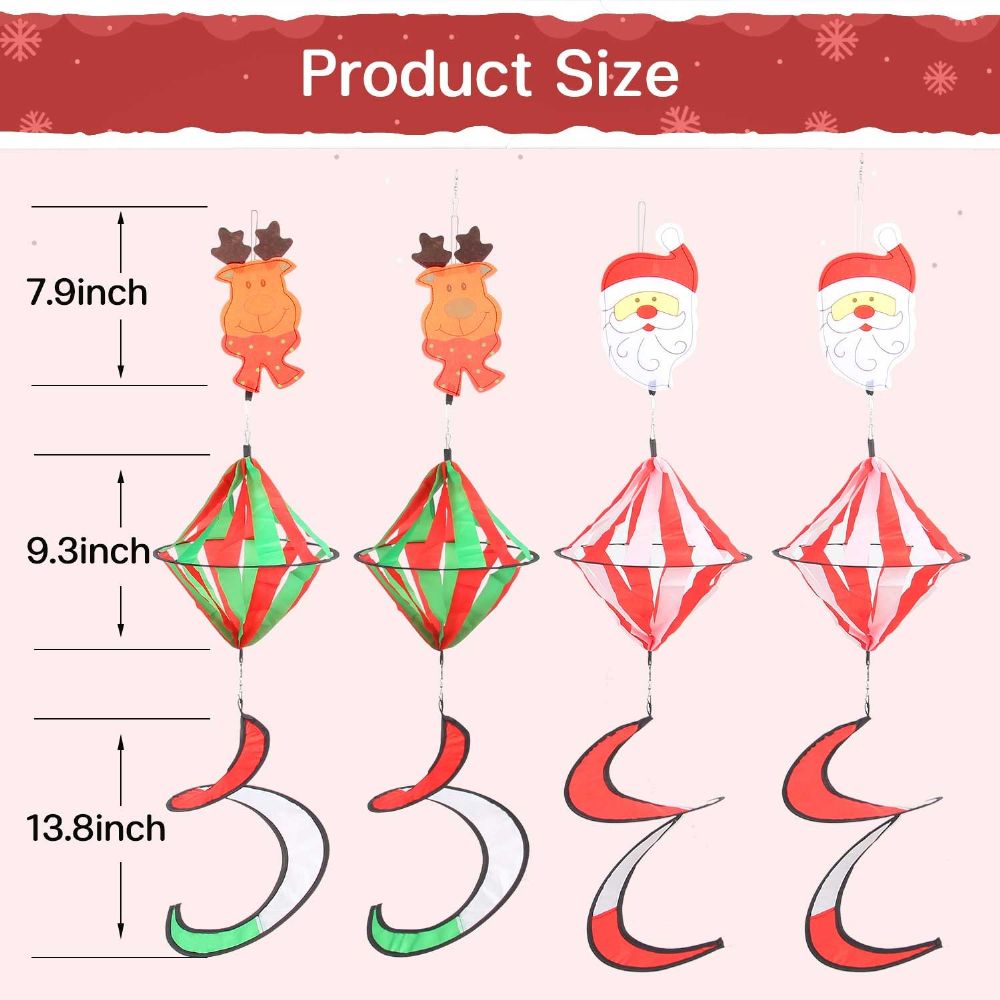 4pack Wind Spinner Spring for Christmas Day, Wind Spiral for Gardon and Yard Decoration, Outside Hanging Decorations Santa Claus Reindeer, Windsock Xmas Ornament for Outdoor Porch, Lawn, Tree