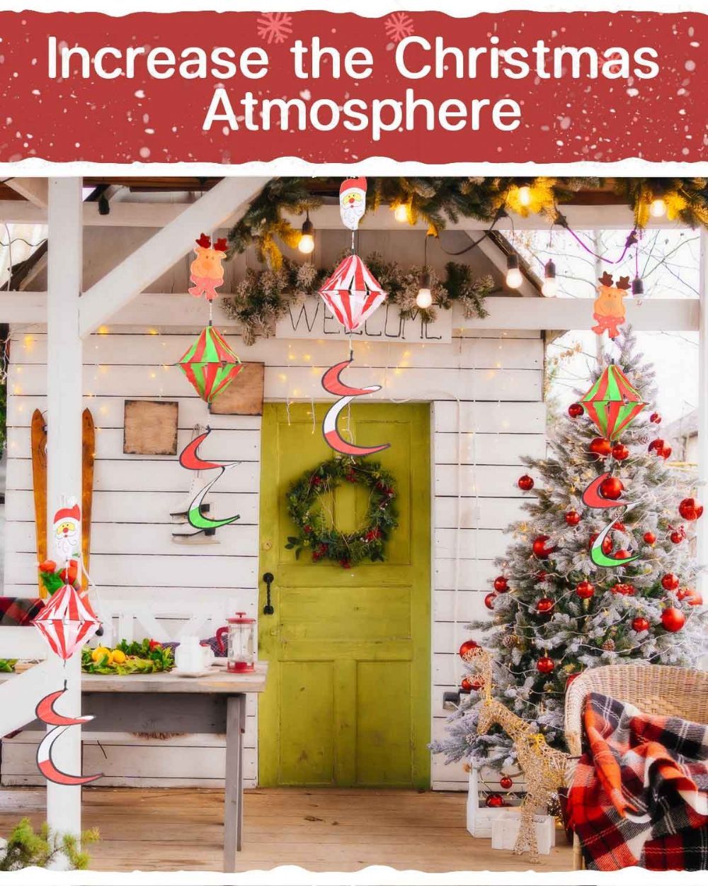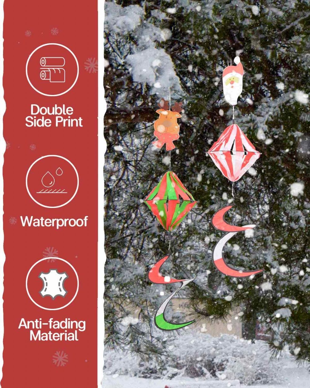 Swinging With The Wind: The spinner will rotate in the direction of the breeze blowing. The red and white color combination of red and green undoubtedly adds to the festive atmosphere, while attracting the attention of family, and children, this will be a perfect gift. Even in the event of rainy or snowy days, do not worry, the wind vane uses a quick-drying material, durable and reusable.