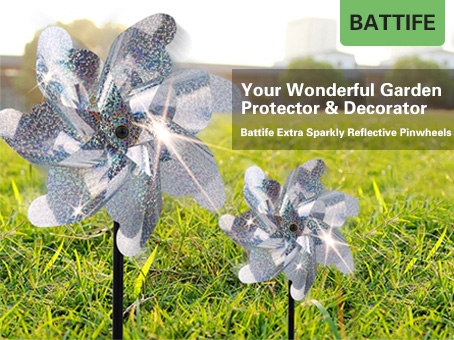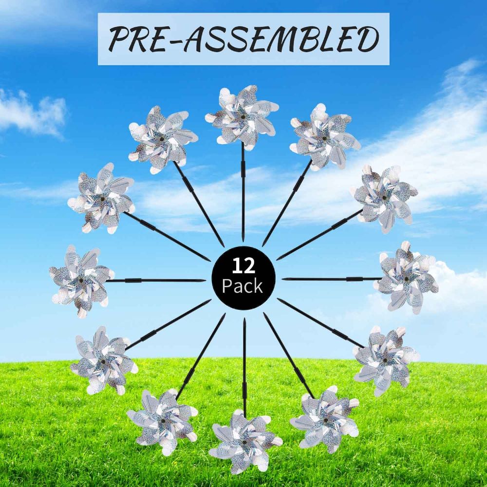 🎈 WIDE USE: The bird blinder pinwheels are made of plastic with reflective laser effect, effectively repel birds and animals. Keep them away from your balcony, garden, tomatoes, potatoes, peppers and other crops.