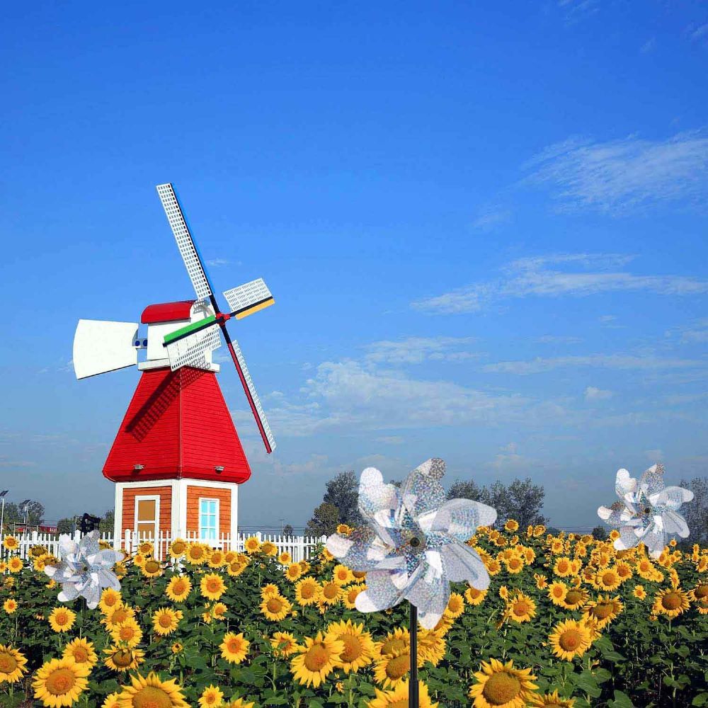 😇 HIGH EFFECT WITH LOW PRICE: Kids love it. It’s small and cheap, the quality is great. No need to spend a lot of money to buy a very ugly and big scarecrow. The size of the pinwheels is 19.7Hx6.8w. A useful and beautiful tool to deterrent the birds.