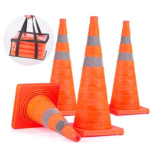 ❤[Collapse design & Easy storage] - Each collapsible traffic cones can collapse up to 28" and collapses down to 1.7" in height for easy storage which only takes a small space in your car or garage. Carry the traffic cones conveniently.
