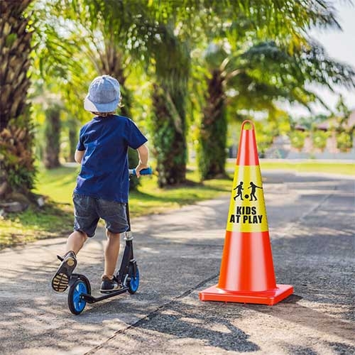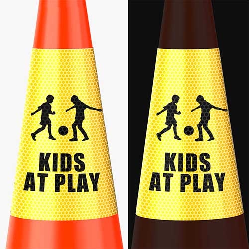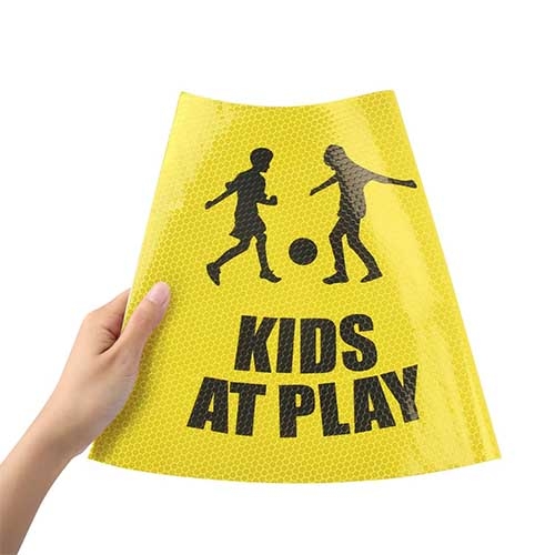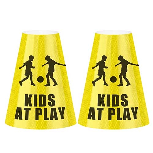2 Pack"Kids at Play" Bright Reflective Collars, Cone Message Stickers for Traffic Safety Cones, 360° High Visible Signs for Driveway Road Outdoor Use (Yellow)