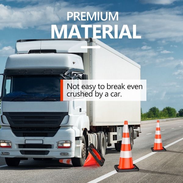 【PREMIUM PVC】 Every construction cone is made from durable premium PVC. That makes the safety cones solid, stable, and weighted, able to withstand heavy loads and wear resistance to UV rays.