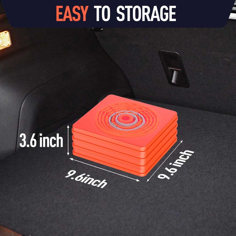 [Collapse design & Easy storage] - Each collapsible traffic cones can collapse up to 18" and collapses down to 0.9" in height for easy storage which only takes a small space in your car or garage. Carry the traffic cones conveniently.