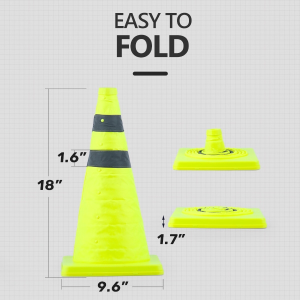 [Collapse design & Easy storage] - Each collapsible traffic cones can collapse up to 18" and collapses down to 0.9" in height for easy storage which only takes a small space in your car or garage. Carry the traffic cones conveniently.