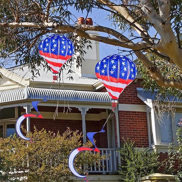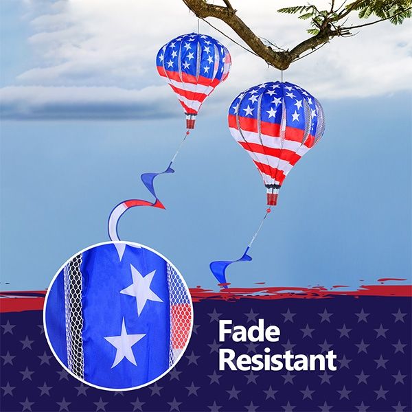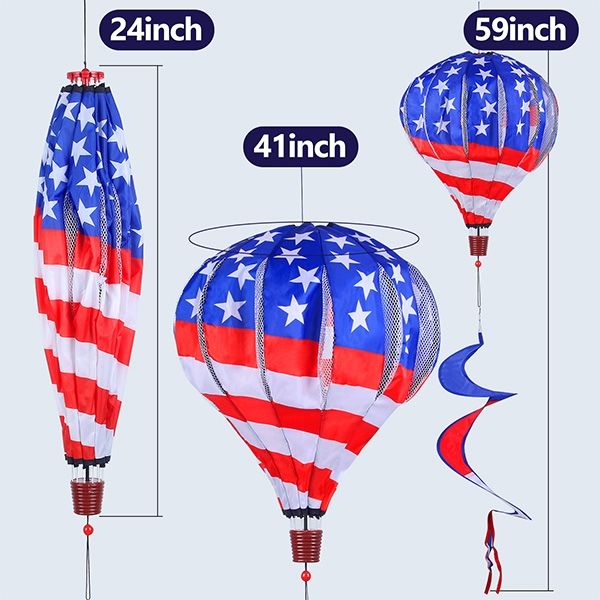 BATTIFE 2Pcs Patriotic Hot Air Balloon Wind Spinner, American Flag Kinetic Hanging Wind Twister with Tail, Outdoor Spiral Windmill Garden Yard Decoration