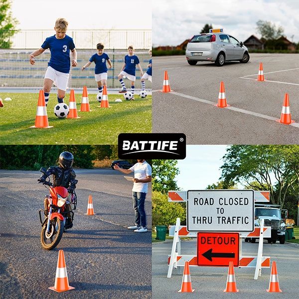 MULTI-FUNCTIONS - The safety cones can be used in personal or public areas, like garden, parking lots, road, square. Create caution or work areas in your driveway or marks off safe places for kids to play in the driveway or playground. Good for basketball, soccer, and football training.