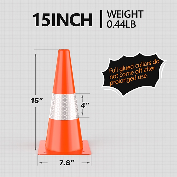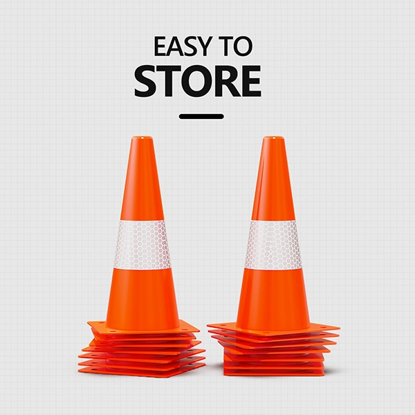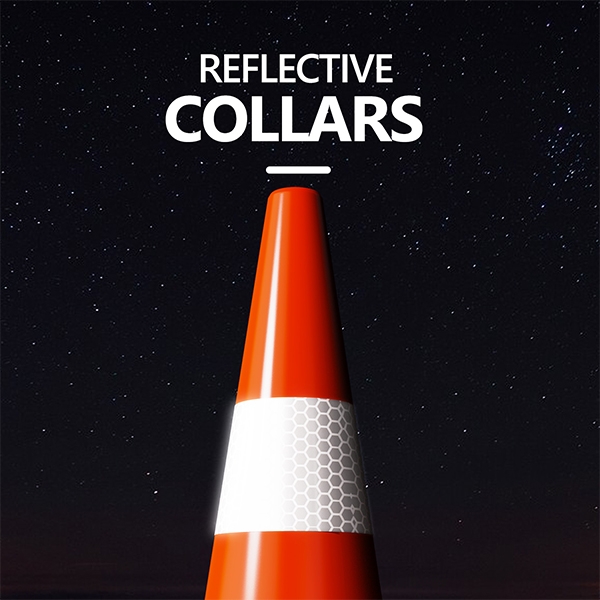 REFLECTIVE COLLARS - With reflective collars and bright orange color, the cones are highly visible during the day or night. 360 degrees of visibility is a significant alternative but not suitable for fog, rain, snow, or other bad conditions.