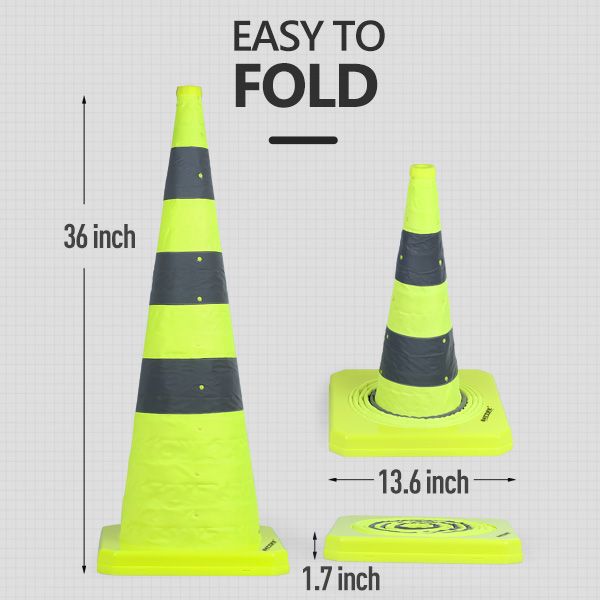 [Collapse design & Easy storage] - Each collapsible traffic cones can collapse up to 36" and collapses down to 1.8" in height for easy storage which only takes a small space in your car or garage. Carry the traffic cones conveniently.