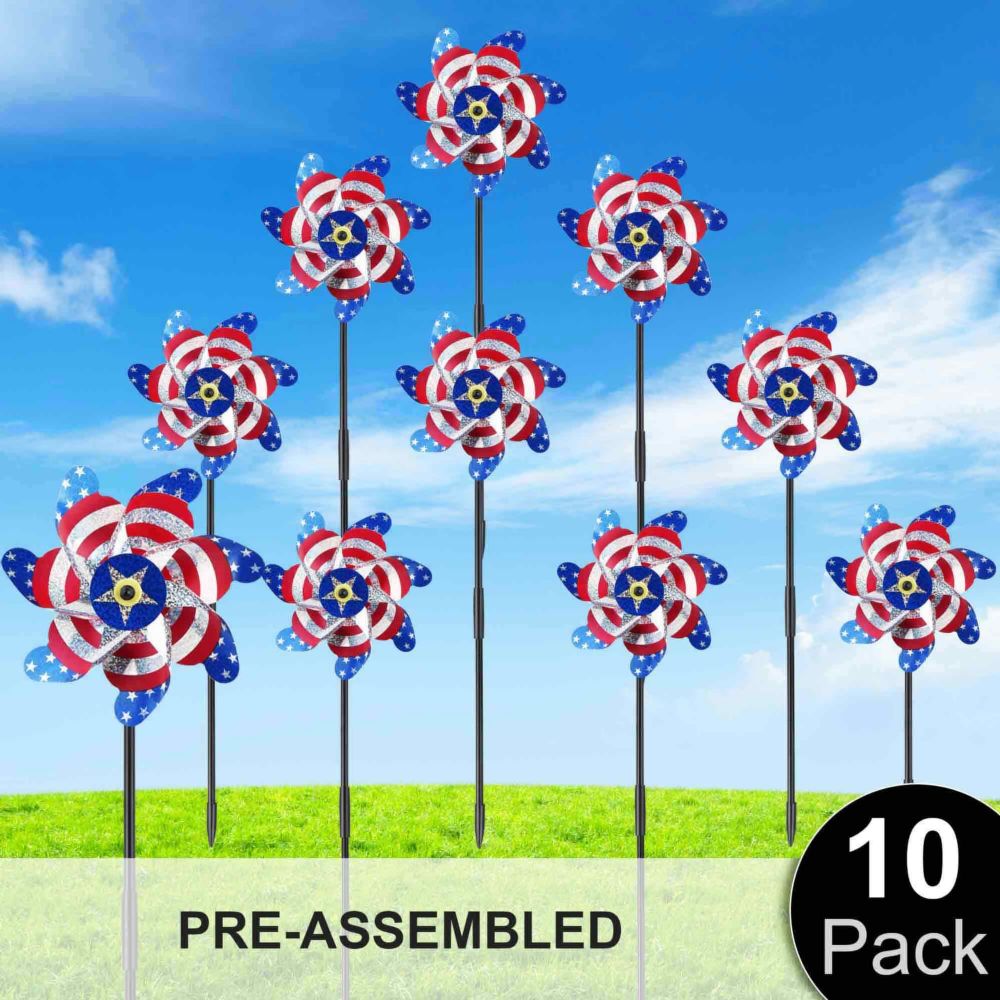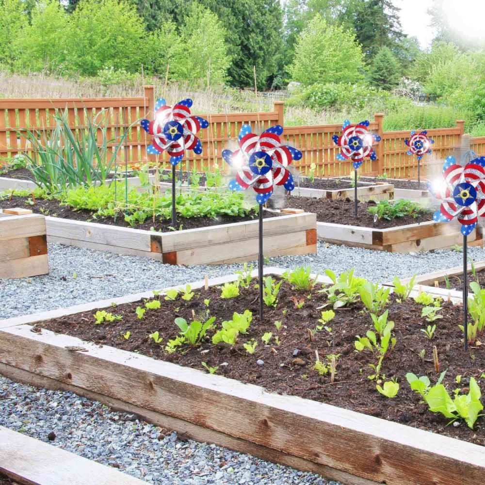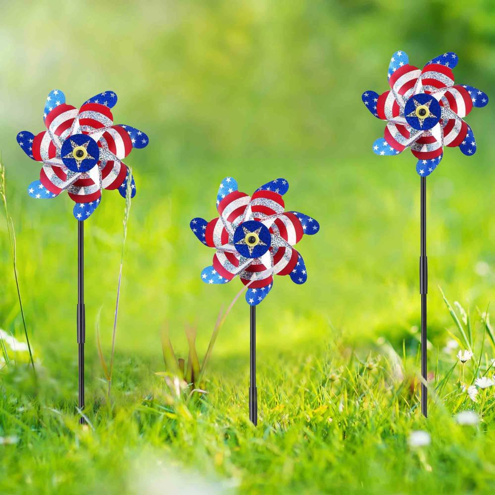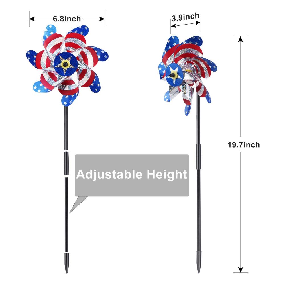 🎈 WIDE USE: The USA flag pattern bird blinder pinwheels are made of plastic with reflective laser effect, effectively repel birds and animals. Keep them away from your balcony, garden, tomatoes, potatoes, peppers and other crops.