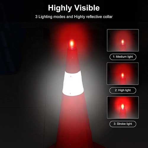 🧡[LED light & Storage bag] - There are 2 traffic safety LED lights with 3 lighting modes to meet your various needs at night in camping, parking, or any other emergency on the roadside, making the traffic cones visible to remind cars and people. Each LED light requires 2 pack AAA batteries. There is a storage bag inside, which is convenient for you to carry the collapsible traffic cone.