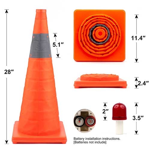 🧡[Collapse design & Easy storage] - Each collapsible traffic cones can collapse up to 28" and collapses down to 2.4" in height for easy storage which only takes a small space in your car or garage. Carry the traffic cones conveniently.