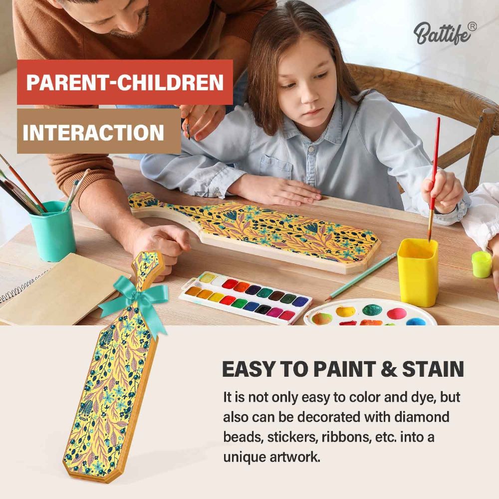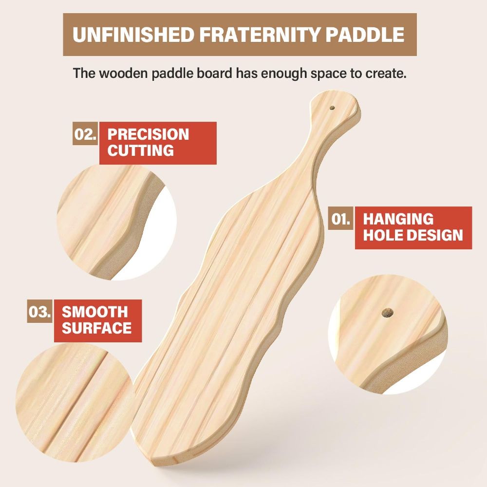 [Creative Art] The unfinished wooden paddle can create its own art. Add paint, color or use drill beads, stickers, ribbons and so on to form different personal styles. Even better is to make it according to the different festivals. A small hole on the top handle of frat paddle for hanging on the wall as decoration.